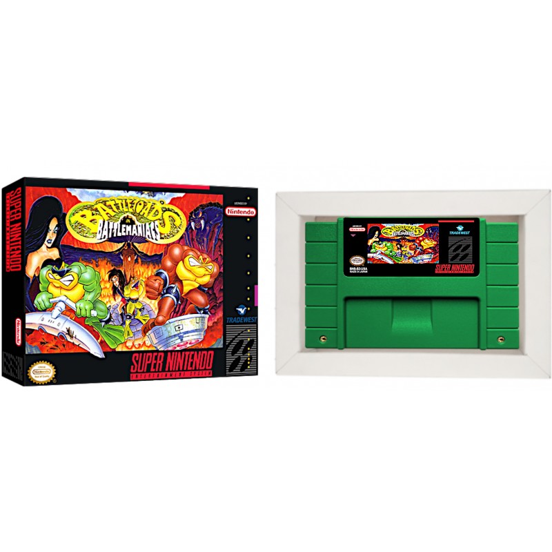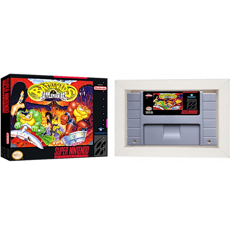 Cartucho de Super Nintendo Battletoads in Battlemaniacs com Caixa e Berço